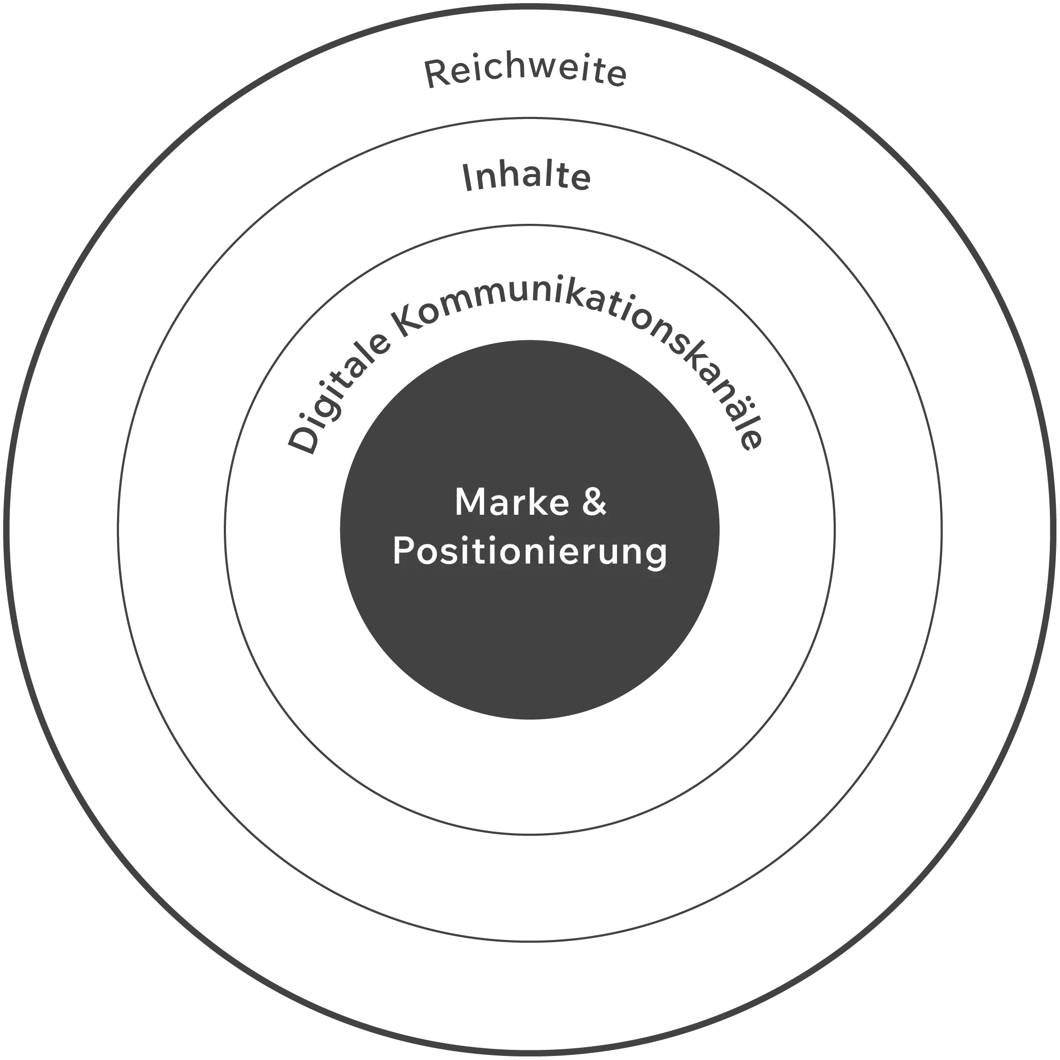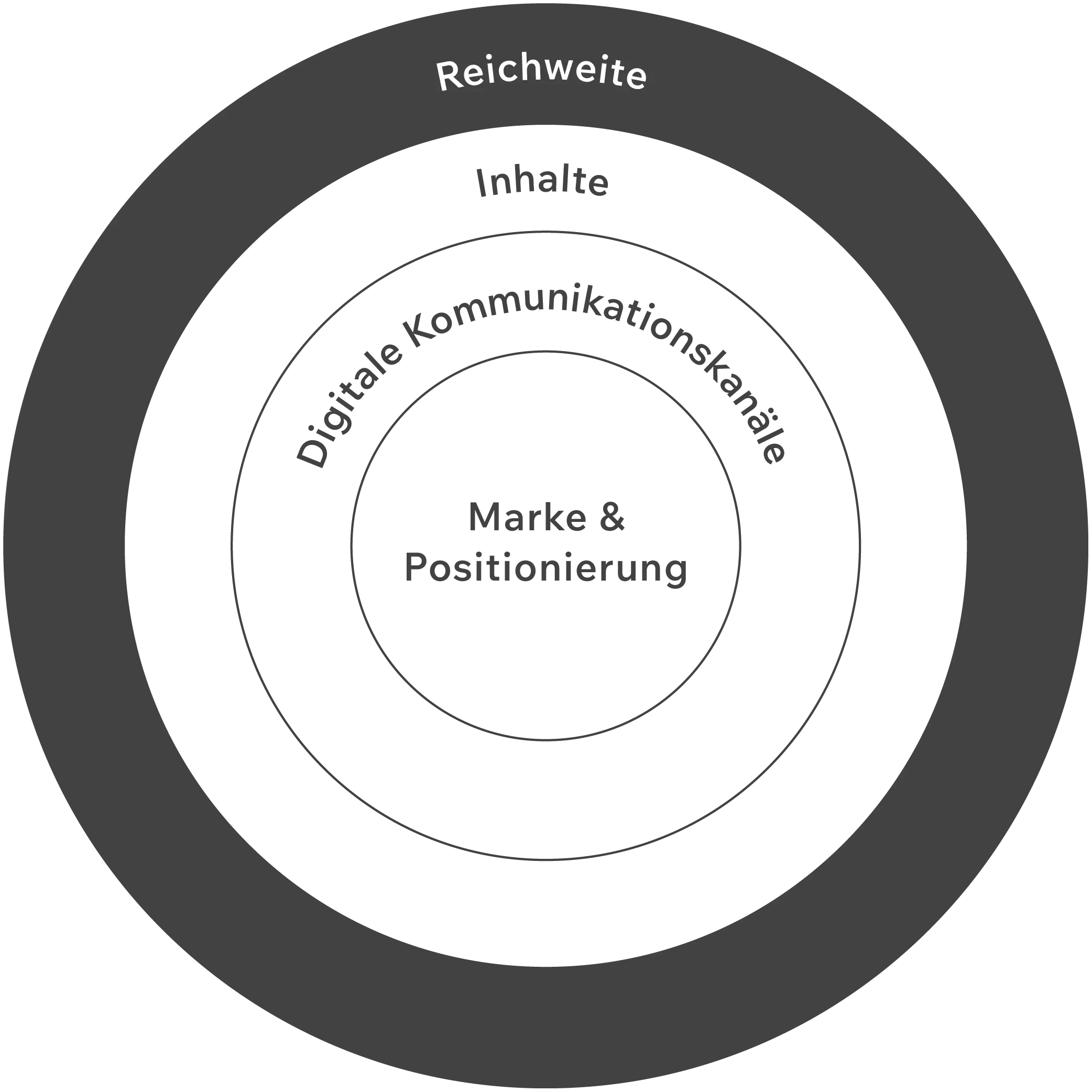 Alle vier Bereiche sind eng miteinander verzahnt. Alle spielen eine wichtige Rolle, um deine Ziele zu erreichen und eine erfolgreiche digitale Kommunikationsstrategie zu entwickeln. Eine erfolgreiche digitale Kommunikationsstrategie berücksichtigt alle vier Ebenen und sorgt dafür, dass sie optimal aufeinander abgestimmt sind. Eine klare Positionierung der Marke bildet das Fundament für die Auswahl der richtigen Kanäle, die Erstellung von ansprechenden Inhalten und die Verbreitung dieser Inhalte, um eine maximale Reichweite zu erzielen.